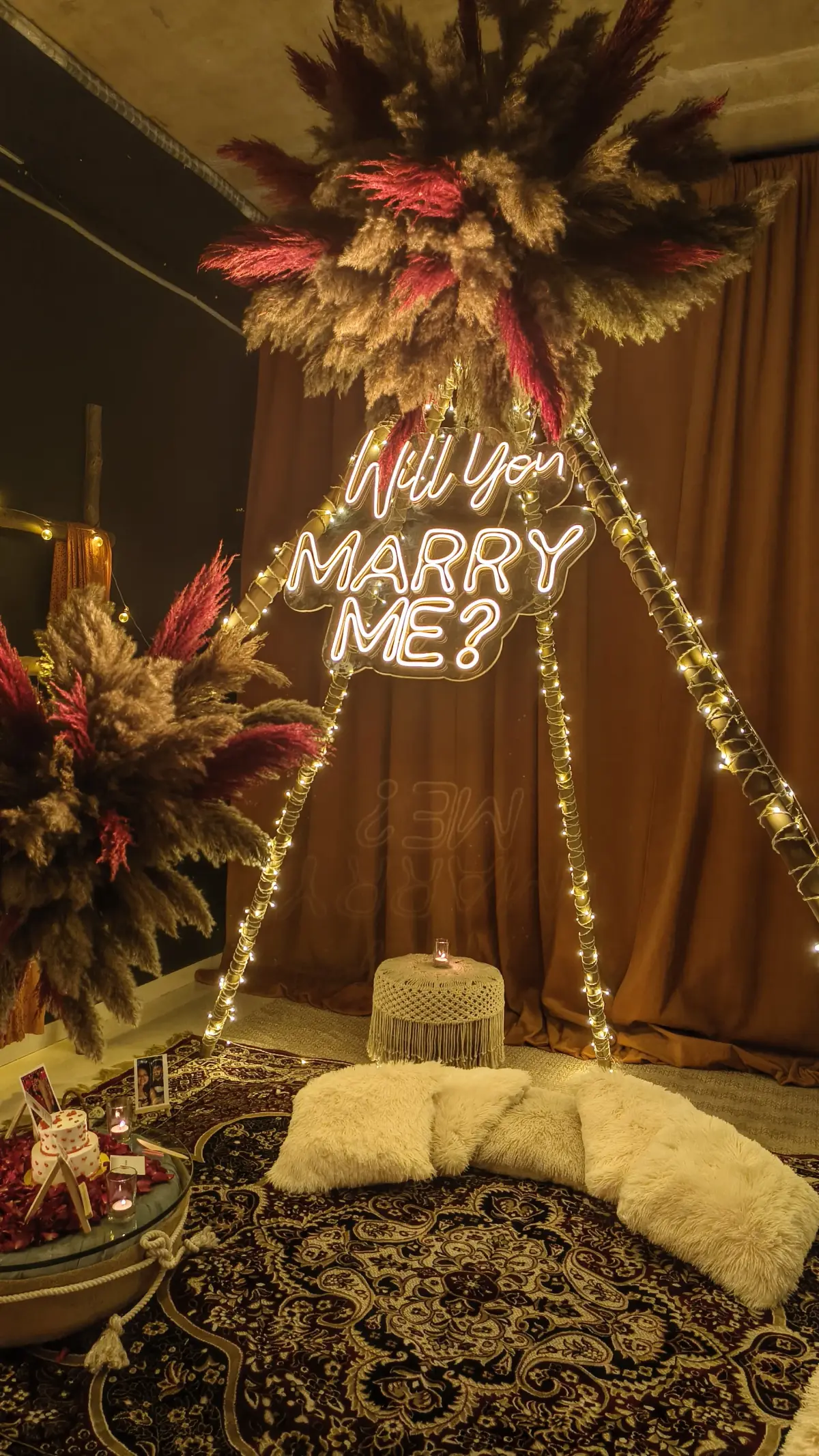 Step into a cozy romantic tent where love blooms under soft lights and dreamy décor