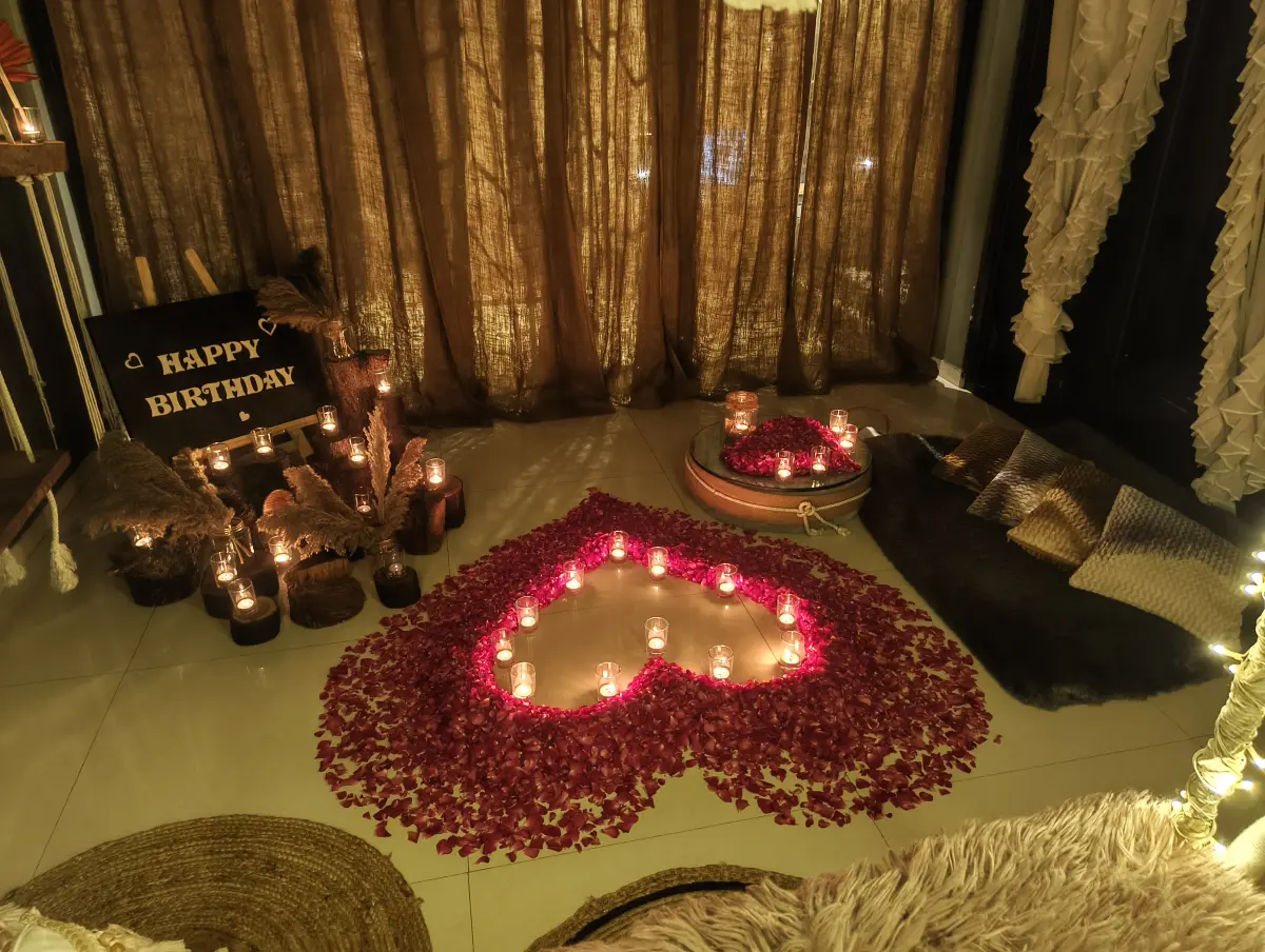 Walk into a fully realized romantic setting with soft music playing and welcome drinks ready. The next 3 hours are yours — delicious food, meaningful conversations, and photograph-worthy moments.
