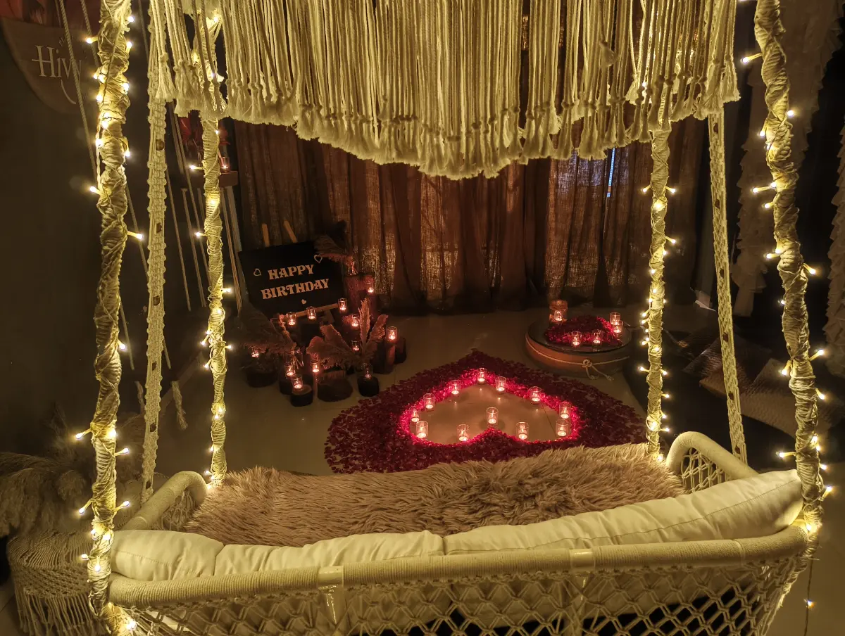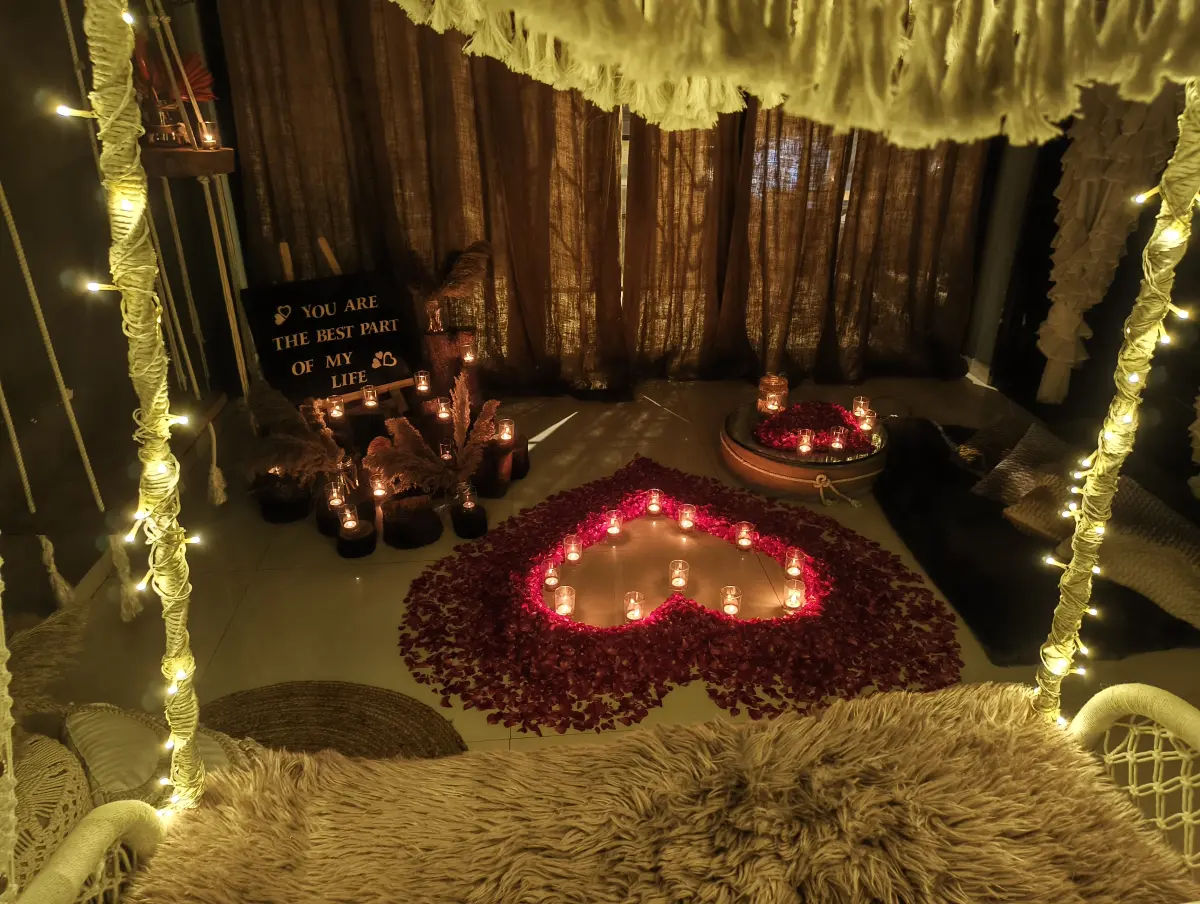 Step into a cozy romantic tent where love blooms under soft lights and dreamy décor