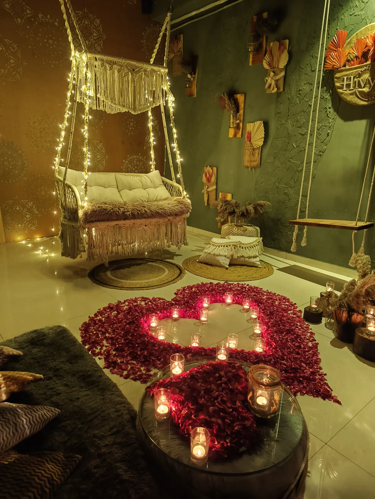 Float in love on a dreamy swing setup where romance meets playfulness