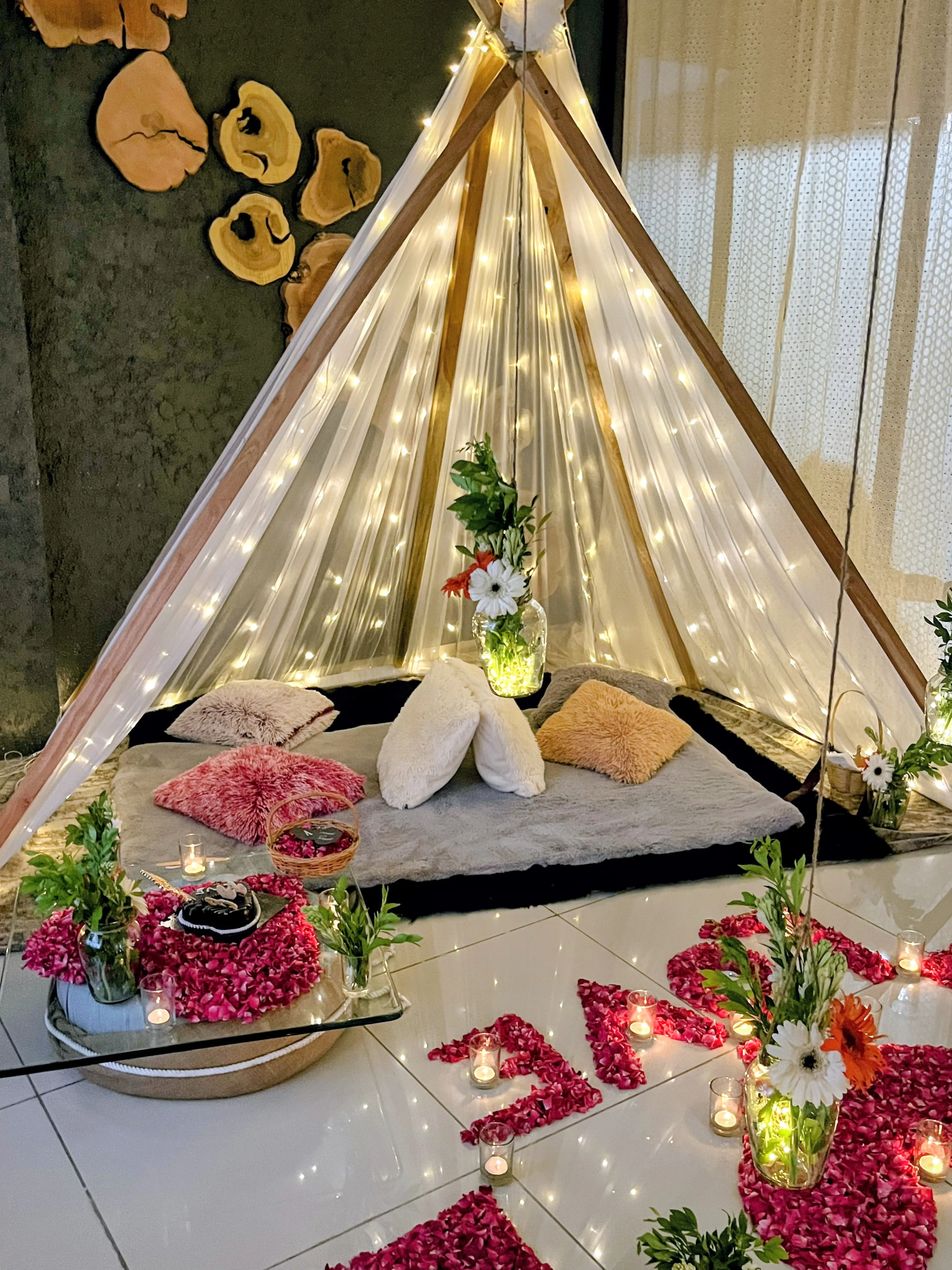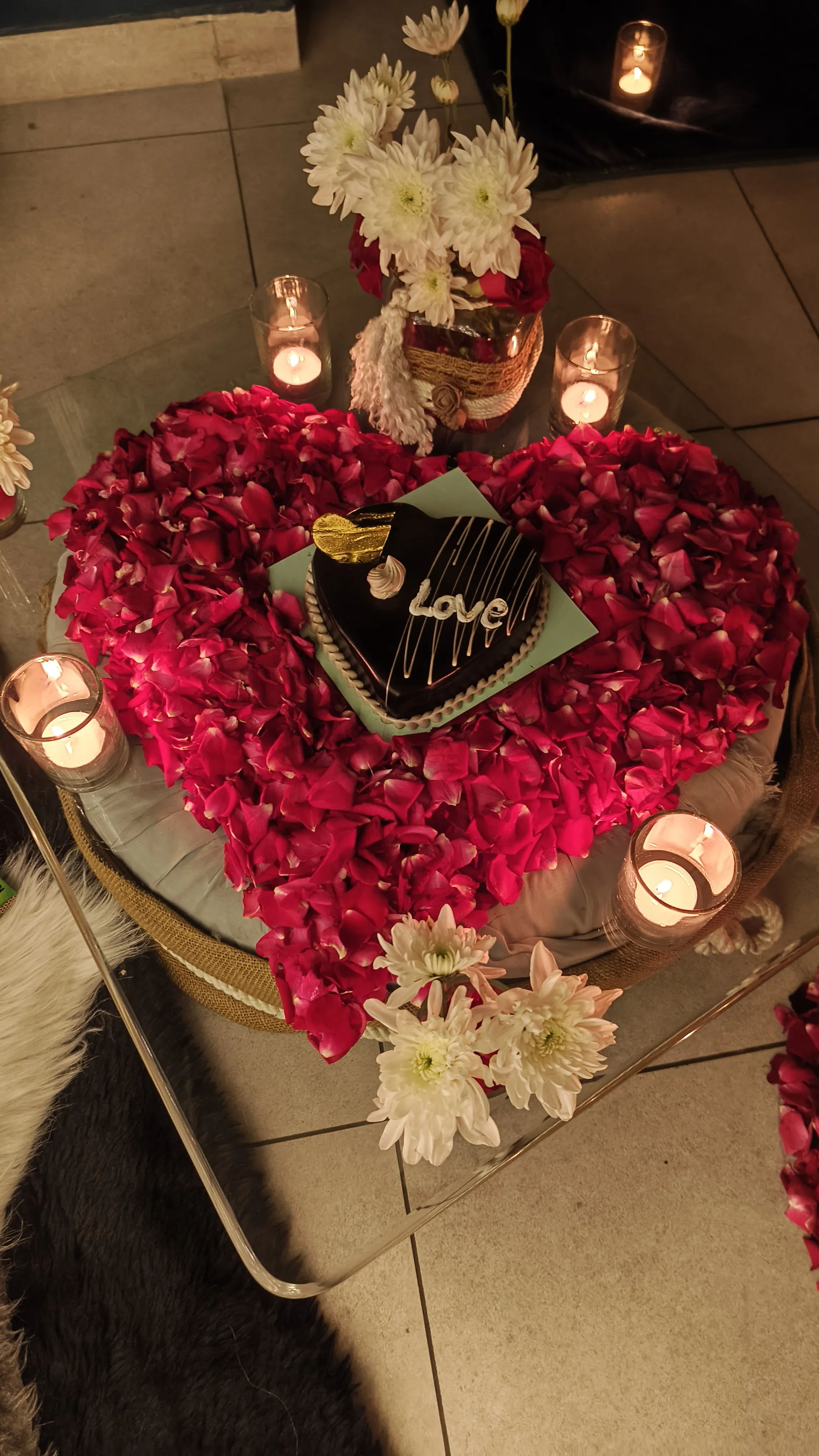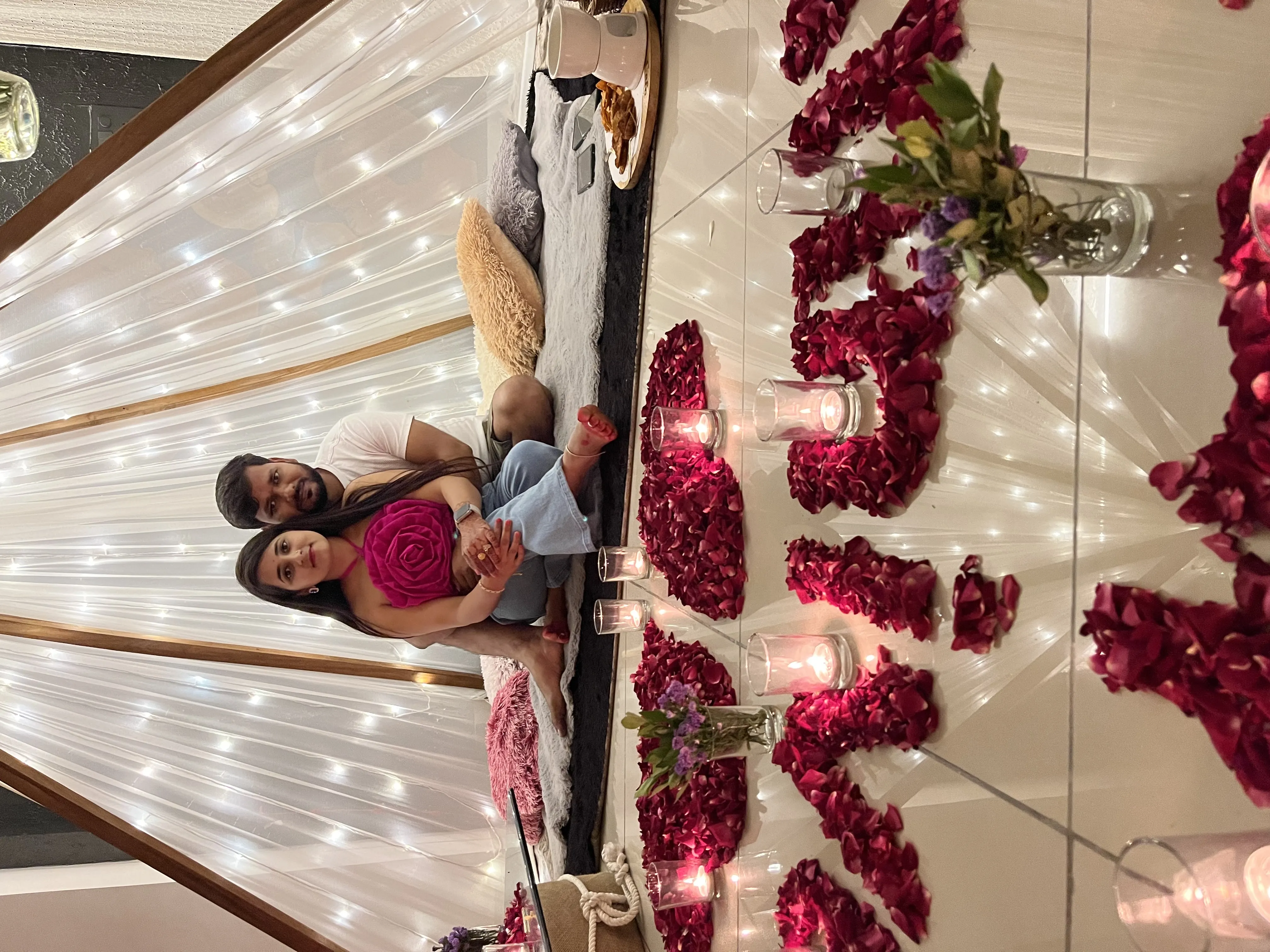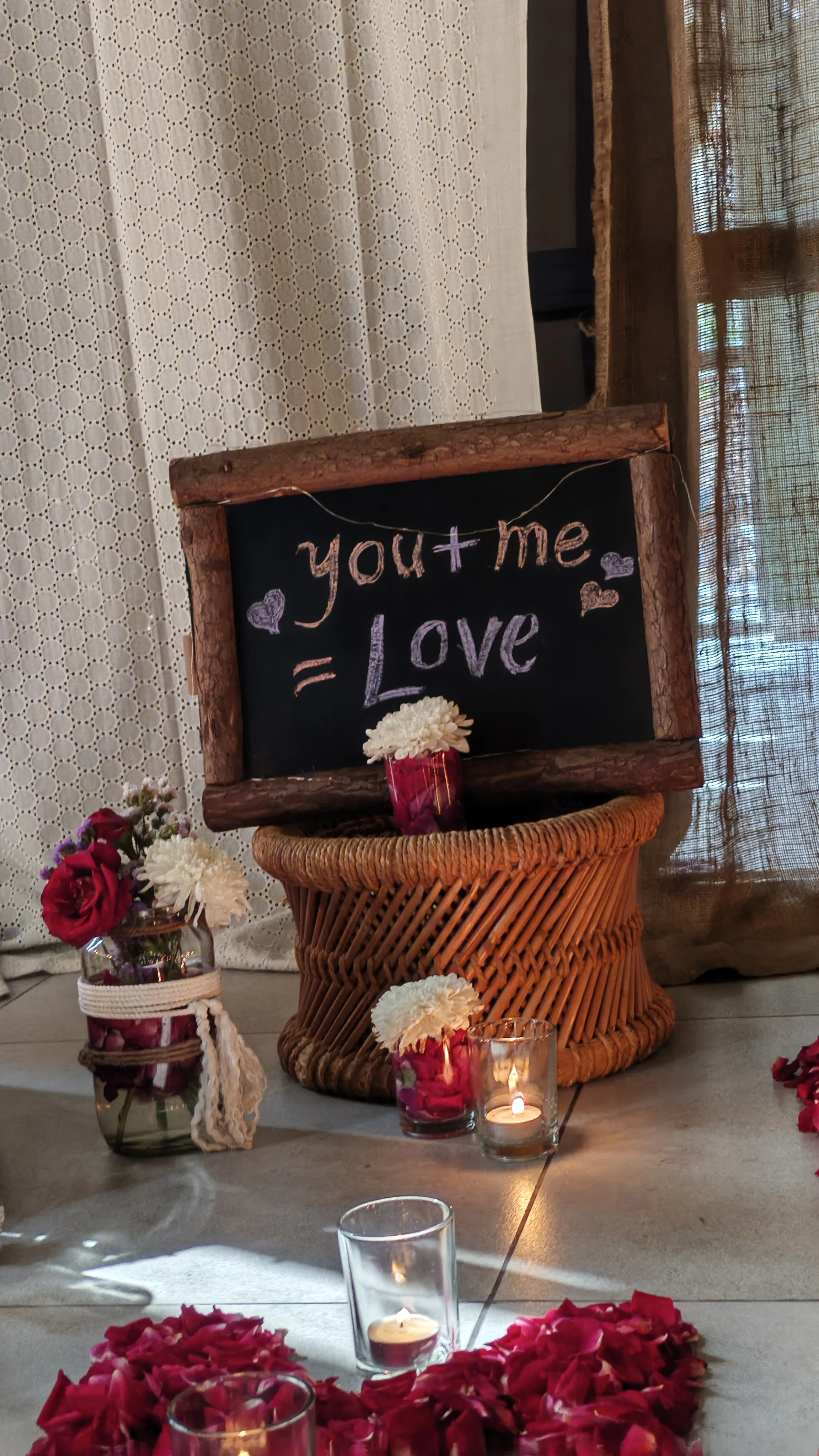Walk into a fully realized romantic setting with soft music playing and welcome drinks ready. The next 3 hours are yours — delicious food, meaningful conversations, and photograph-worthy moments.