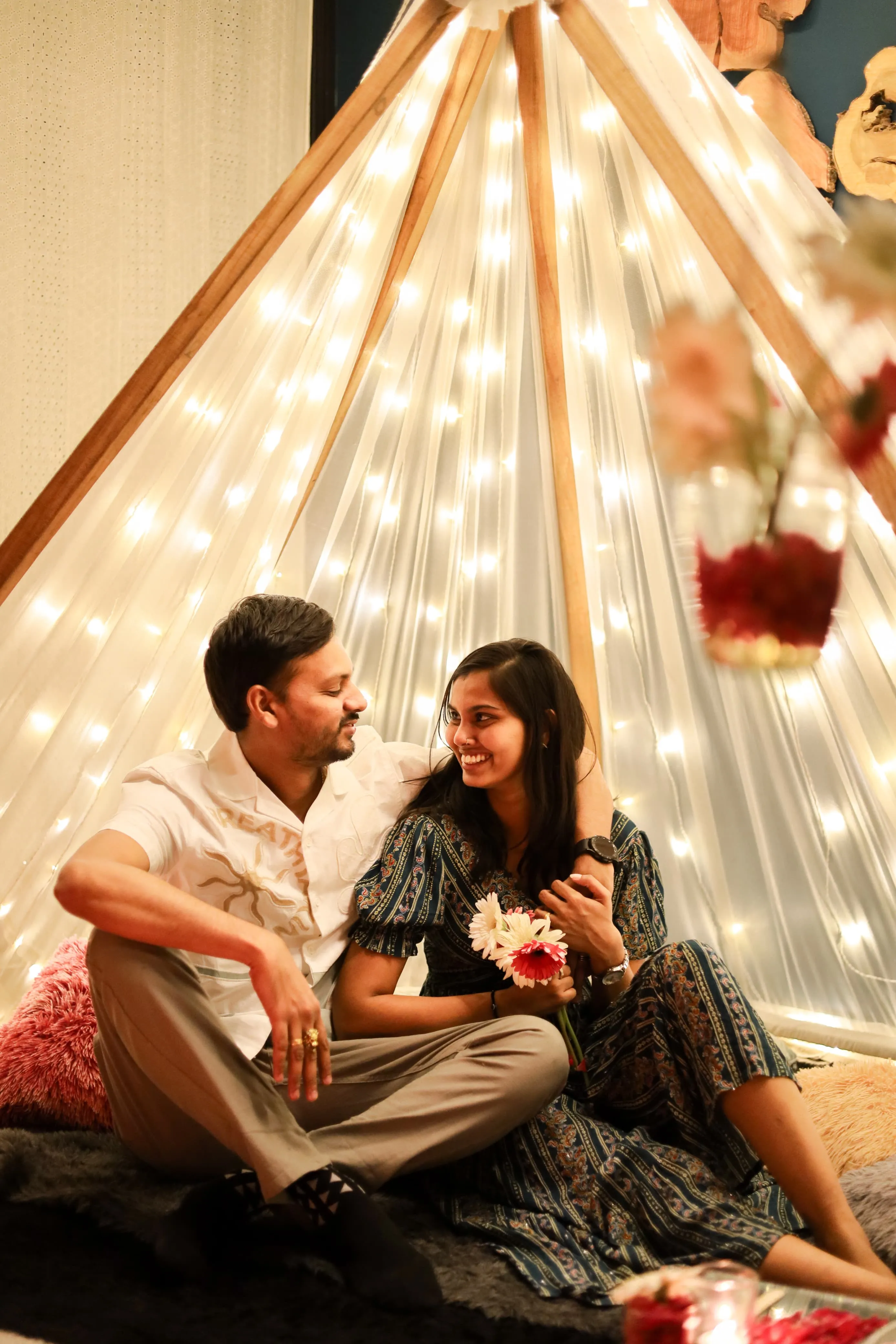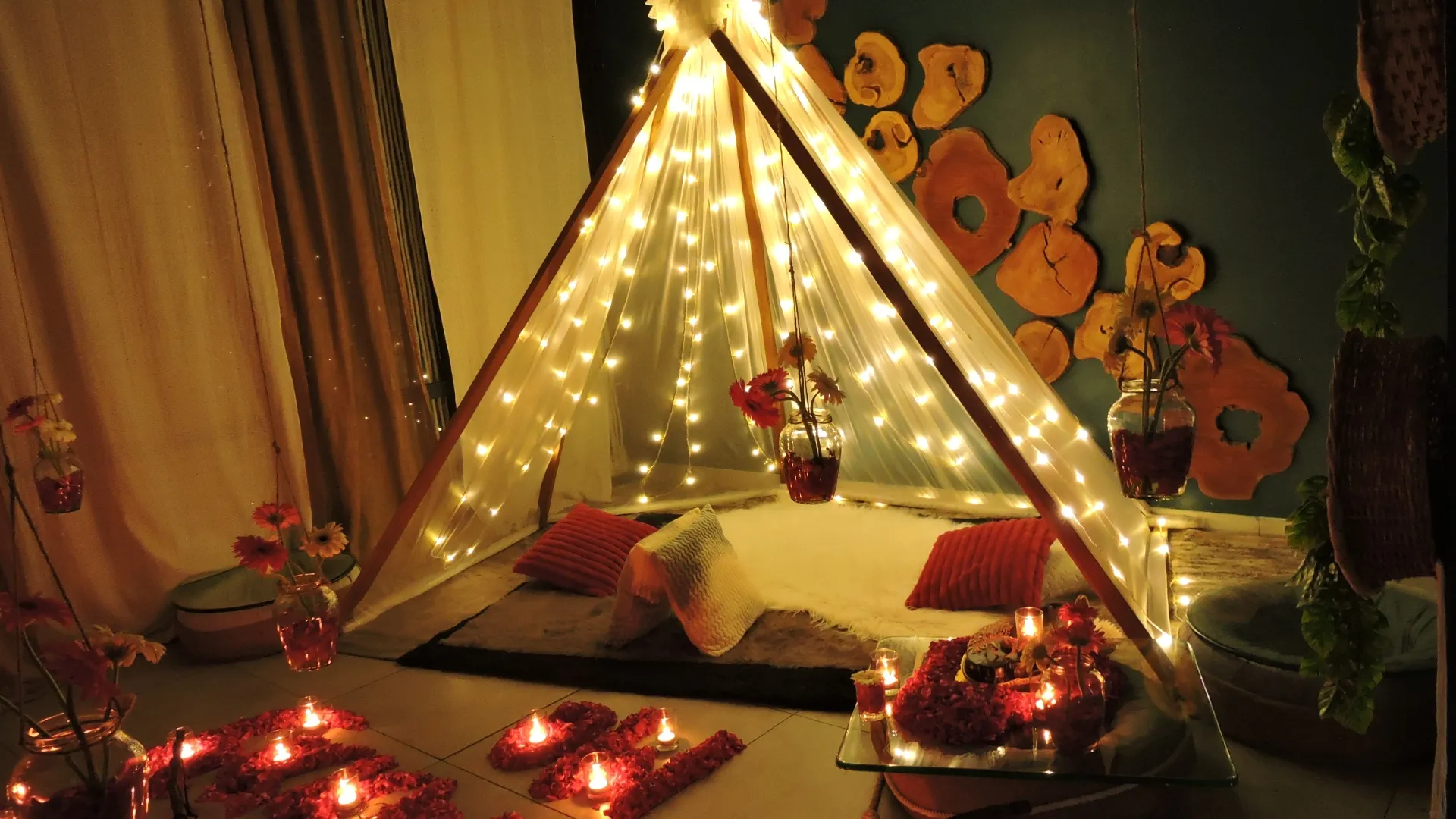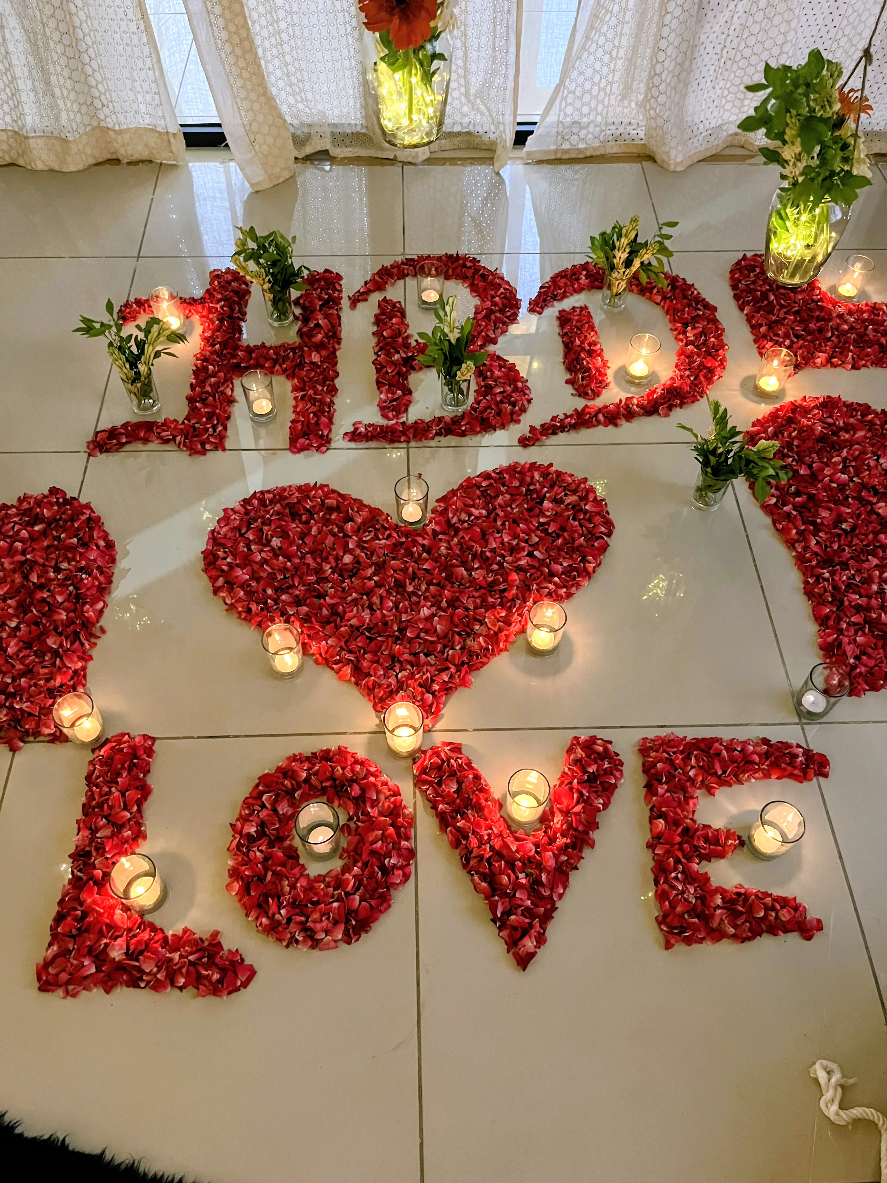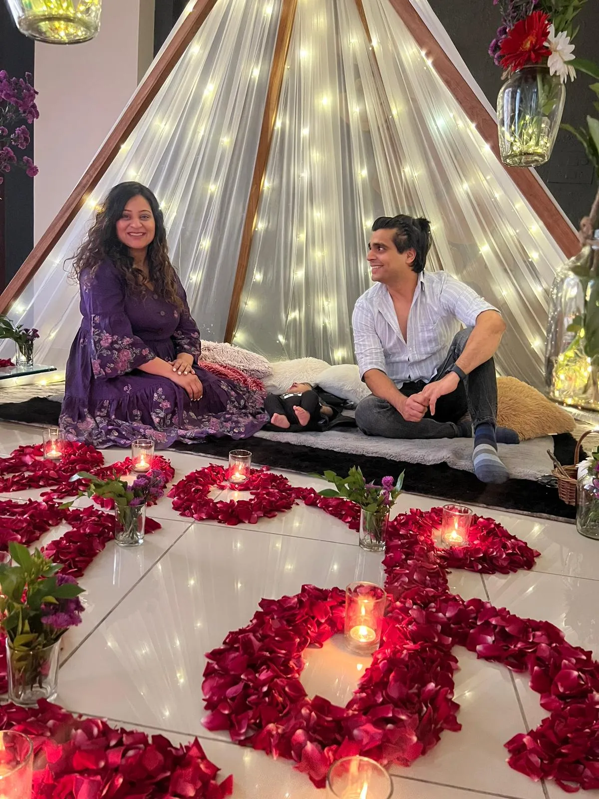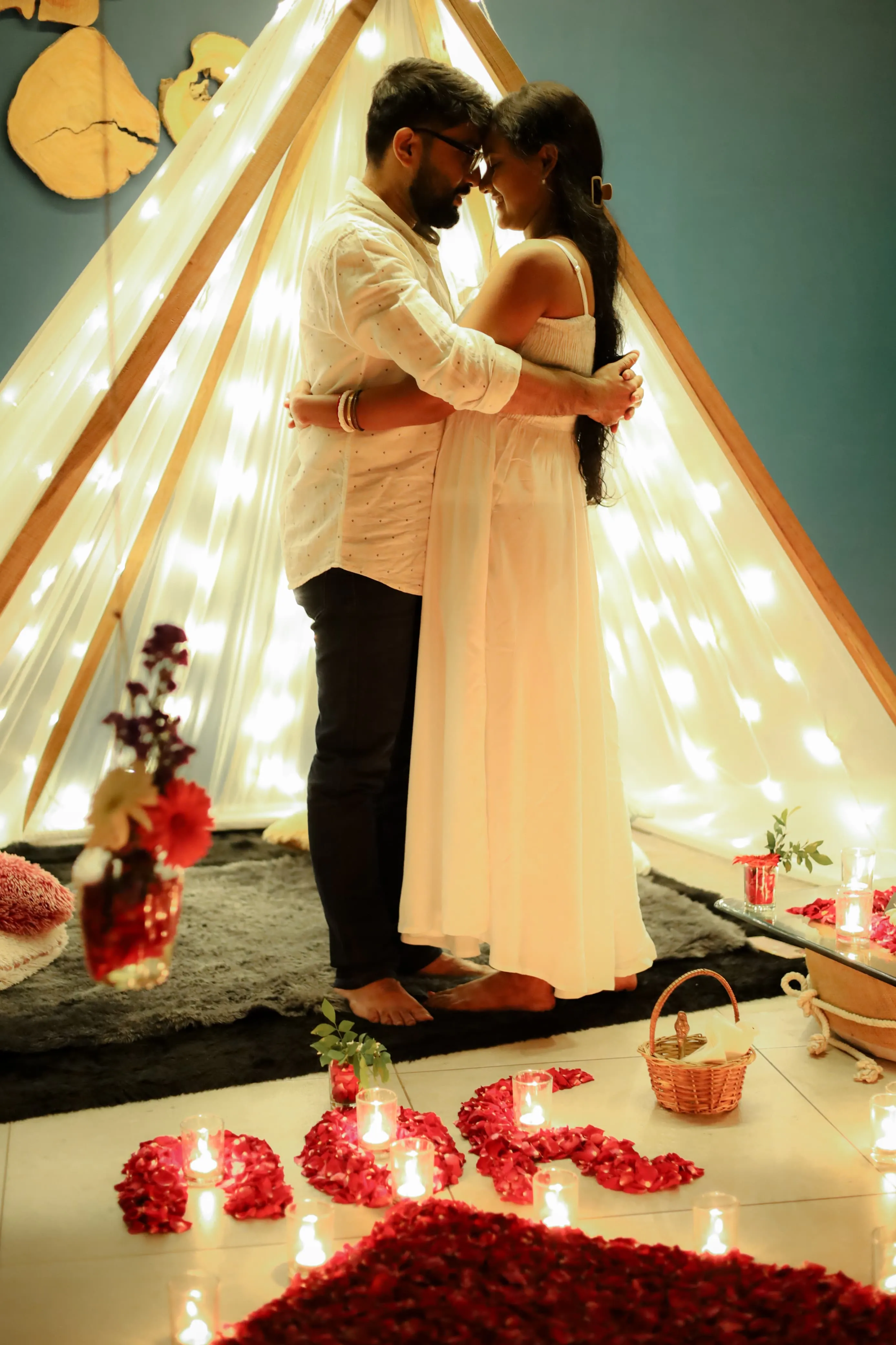 Walk into a fully realized romantic setting with soft music playing and welcome drinks ready. The next 3 hours are yours — delicious food, meaningful conversations, and photograph-worthy moments.