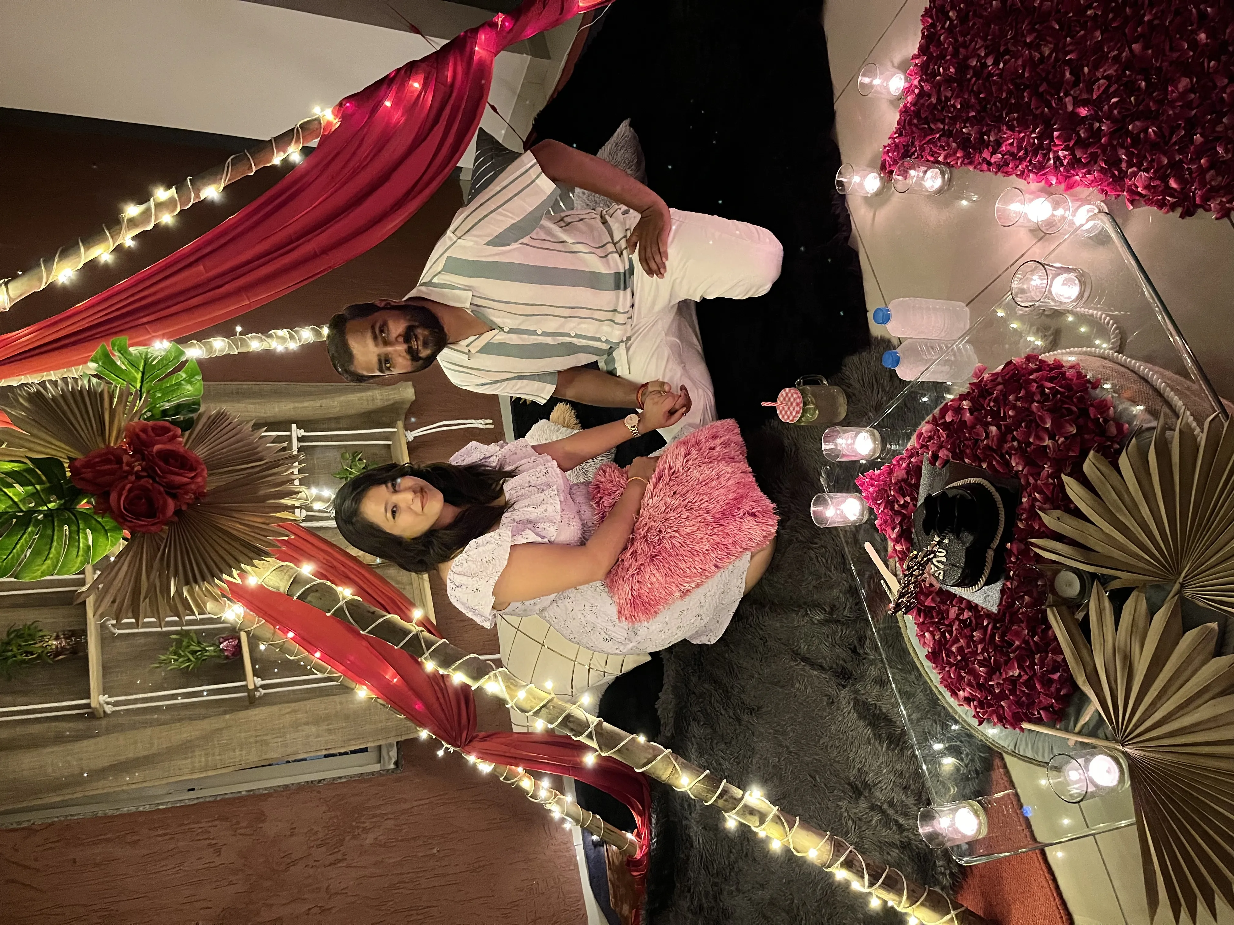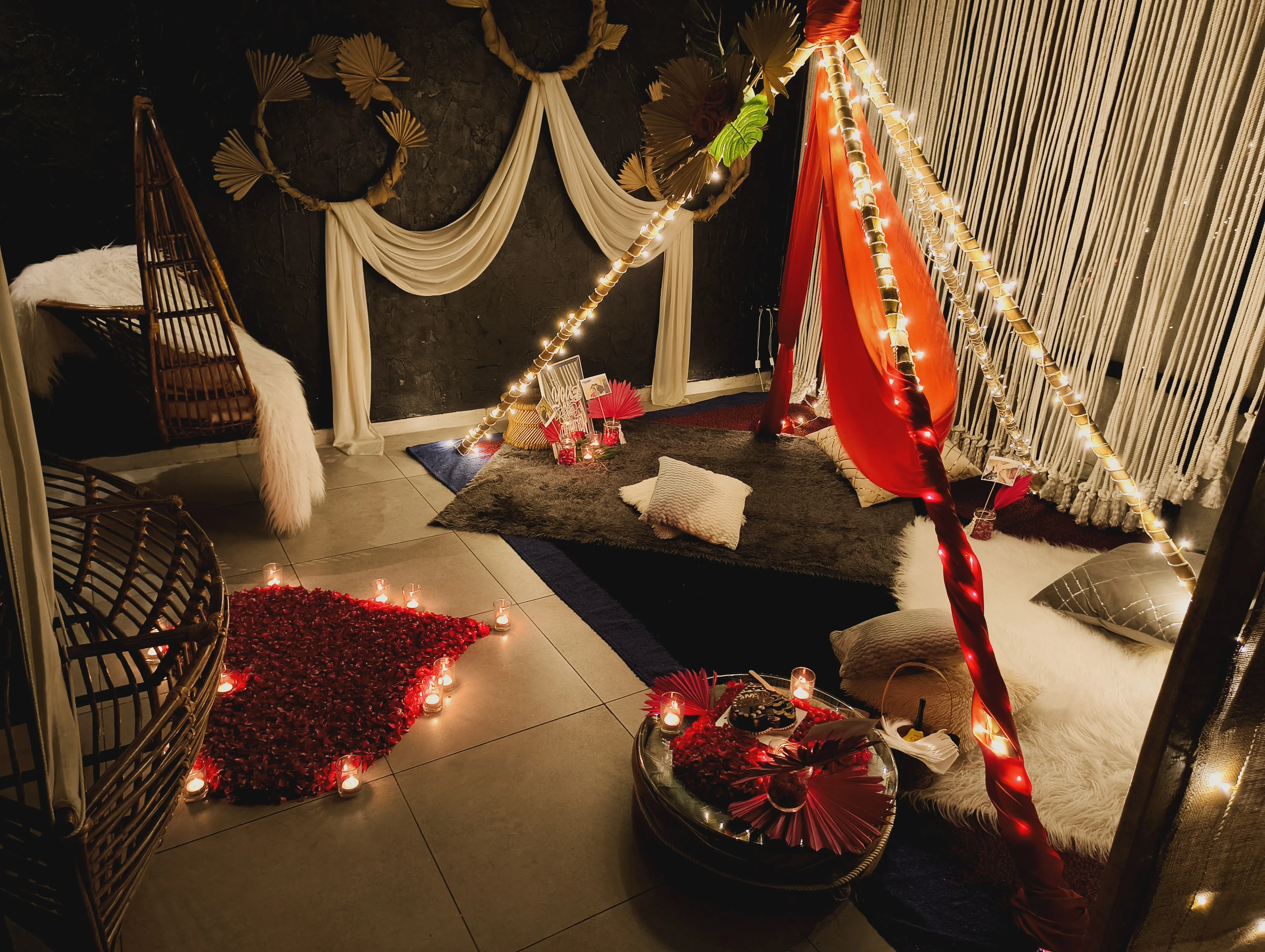 Walk into a fully realized romantic setting with soft music playing and welcome drinks ready. The next 3 hours are yours — delicious food, meaningful conversations, and photograph-worthy moments.