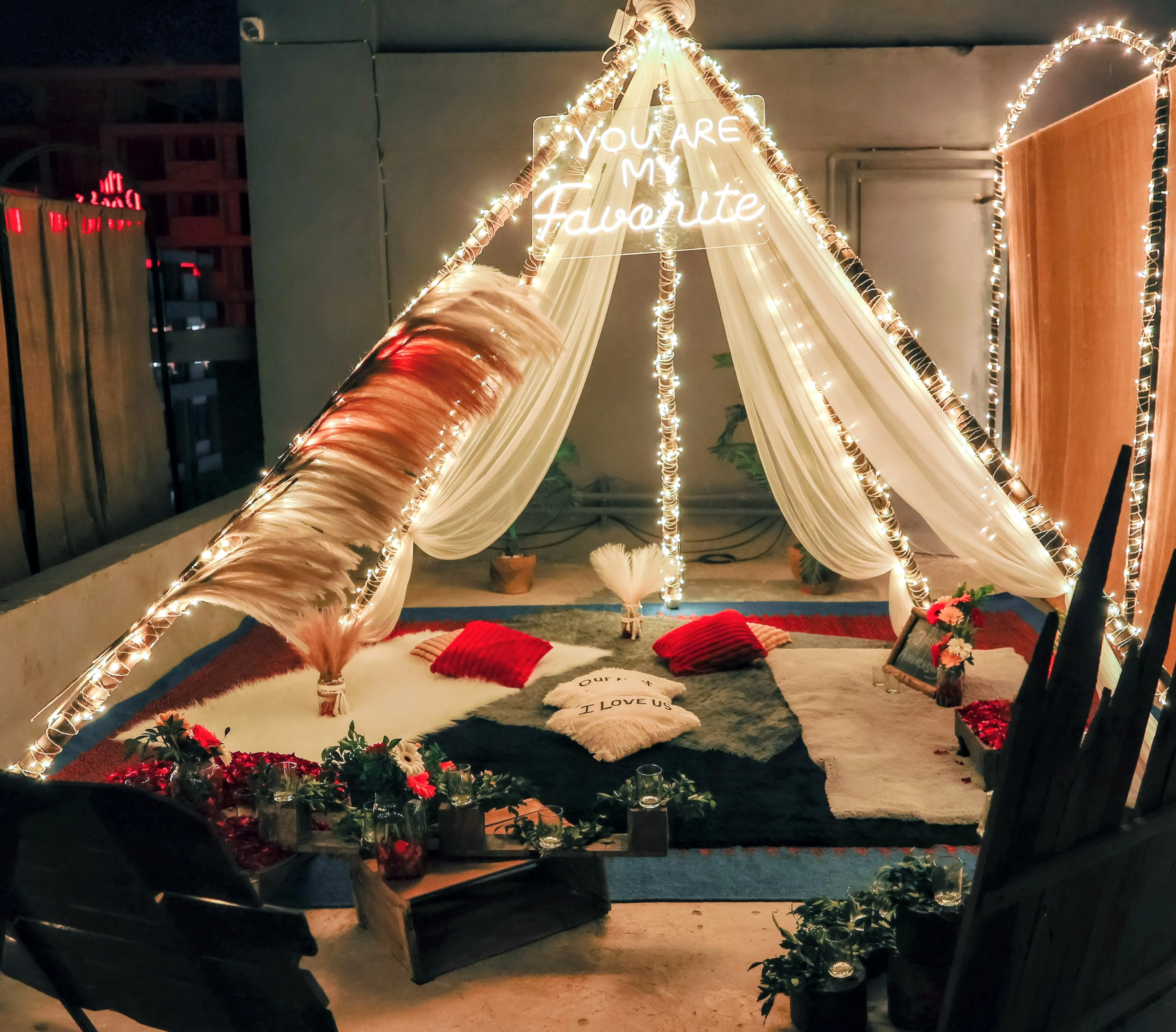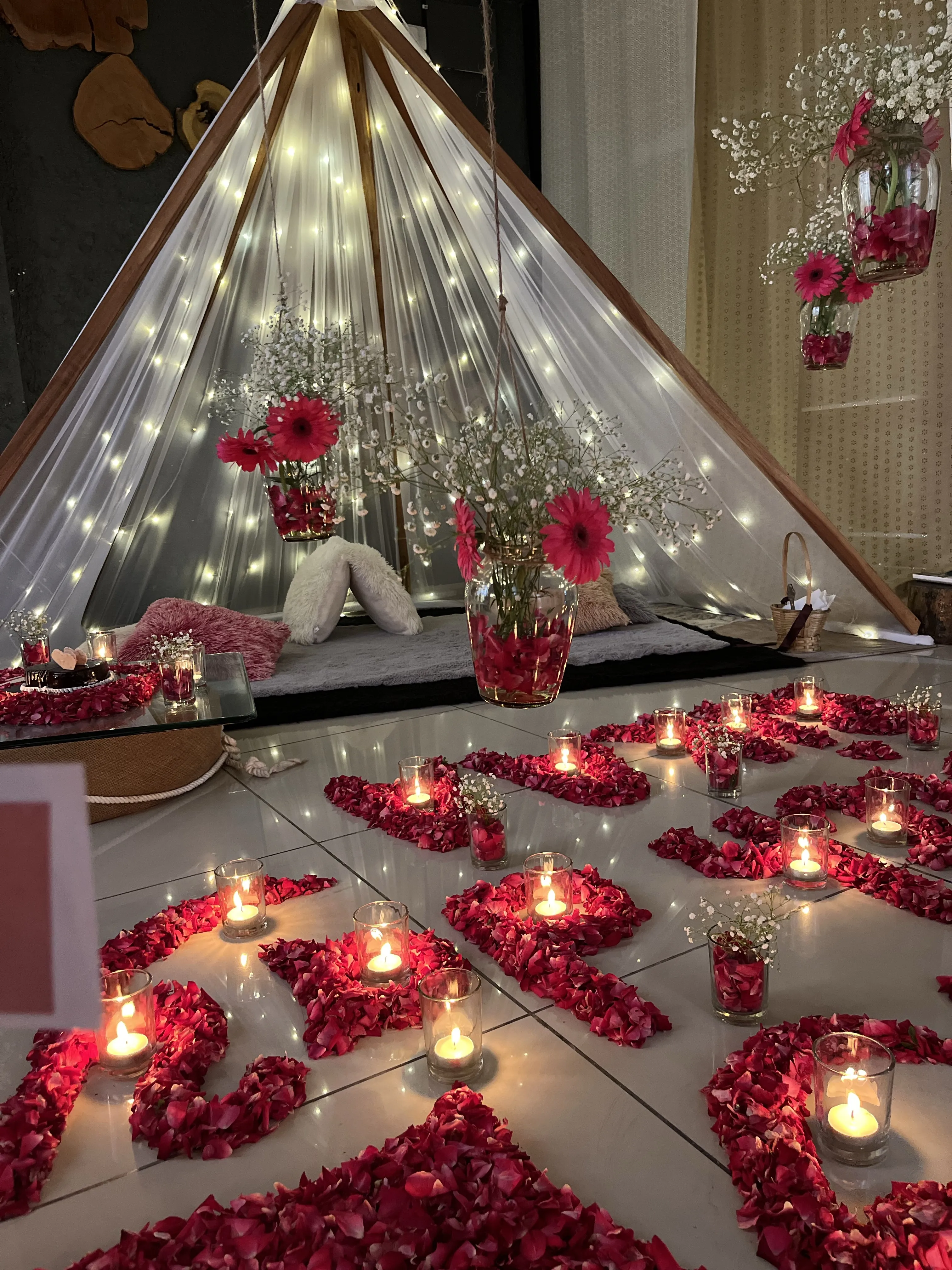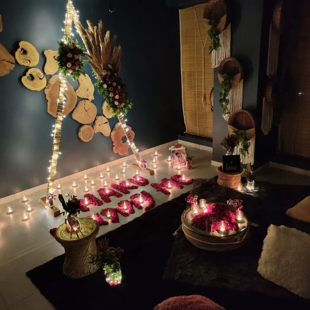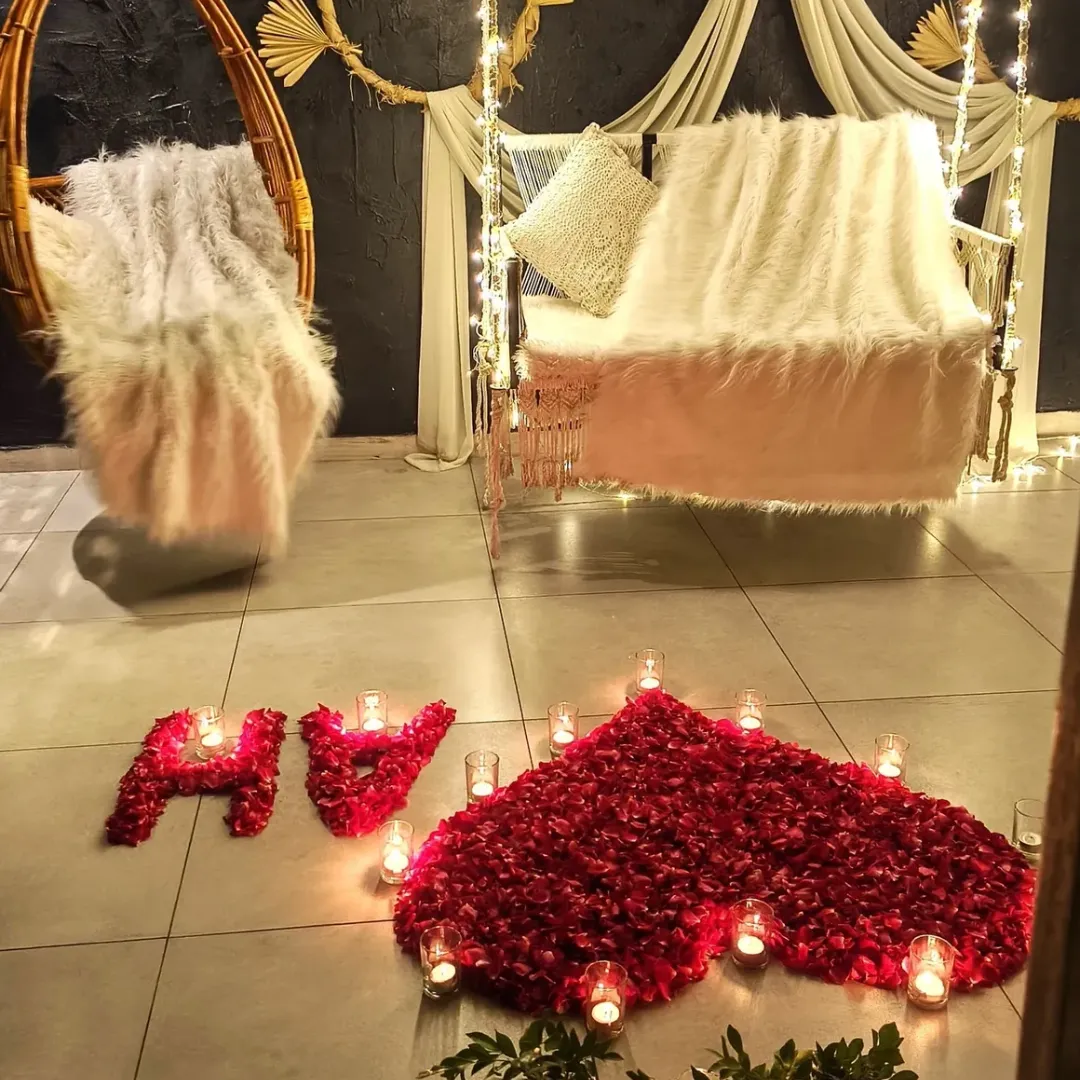 Walk into a fully realized romantic setting with soft music playing and welcome drinks ready. The next 3 hours are yours — delicious food, meaningful conversations, and photograph-worthy moments.